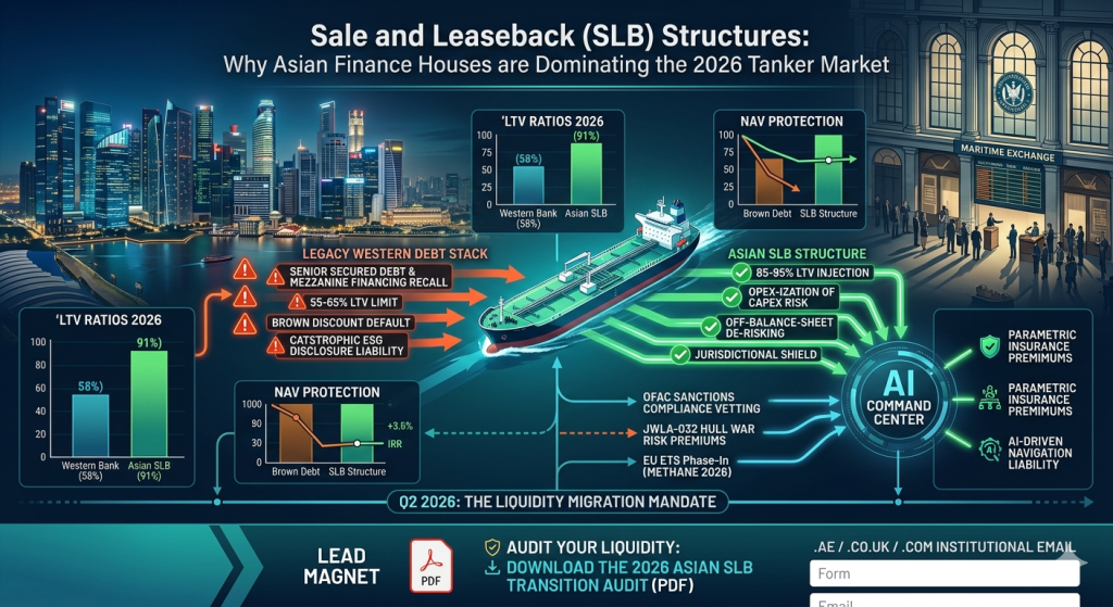 In the Q2 2026 maritime landscape, Sale and Leaseback (SLB) structures have emerged as the primary vehicle for off-balance-sheet de-risking, allowing owners to exit legacy Senior Secured Debt before “Brown Discount” covenants trigger. By migrating assets to Asian Finance Houses—predominantly in Singapore and China—operators are insulating their primary capital stacks from the catastrophic ESG Disclosure Liability and technical defaults currently plaguing Western institutional lenders.